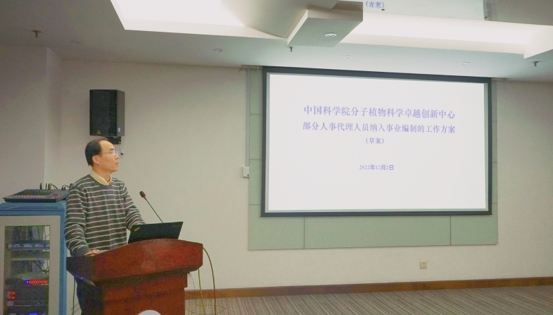 為充分發(fā)揮職代會(huì)作用,促進(jìn)民主管理,2022年12月2日下午,中國科學(xué)院分子植物科學(xué)卓越創(chuàng)新中心在楓林園區(qū)召開第一屆第三次職工代表大會(huì),中心黨委書記、副主任郭金華等職工代表近40人出席會(huì)議。會(huì)議由黨委副書記、紀(jì)委書記、工會(huì)主席孔朝暉主持。