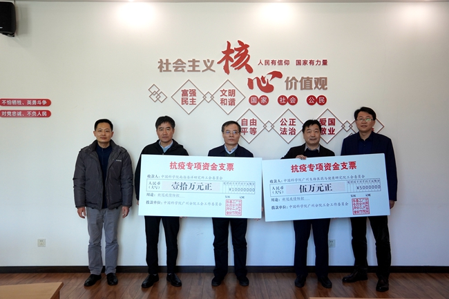 1月18日,中國(guó)科學(xué)院廣州分院舉行了簡(jiǎn)單的抗疫專(zhuān)項(xiàng)資金撥付儀式,廣州分院分黨組書(shū)記、院長(zhǎng)陳廣浩,副院長(zhǎng)孫龍濤出席。中國(guó)科學(xué)院南海海洋研究所黨委書(shū)記謝昌龍、中國(guó)科學(xué)院廣州生物醫(yī)藥與健康研究院黨委副書(shū)記侯紅明分別代表本單位黨委接過(guò)支票,并對(duì)廣州分院分黨組、廣州分院工會(huì)工作委員會(huì)的大力支持表示感謝。