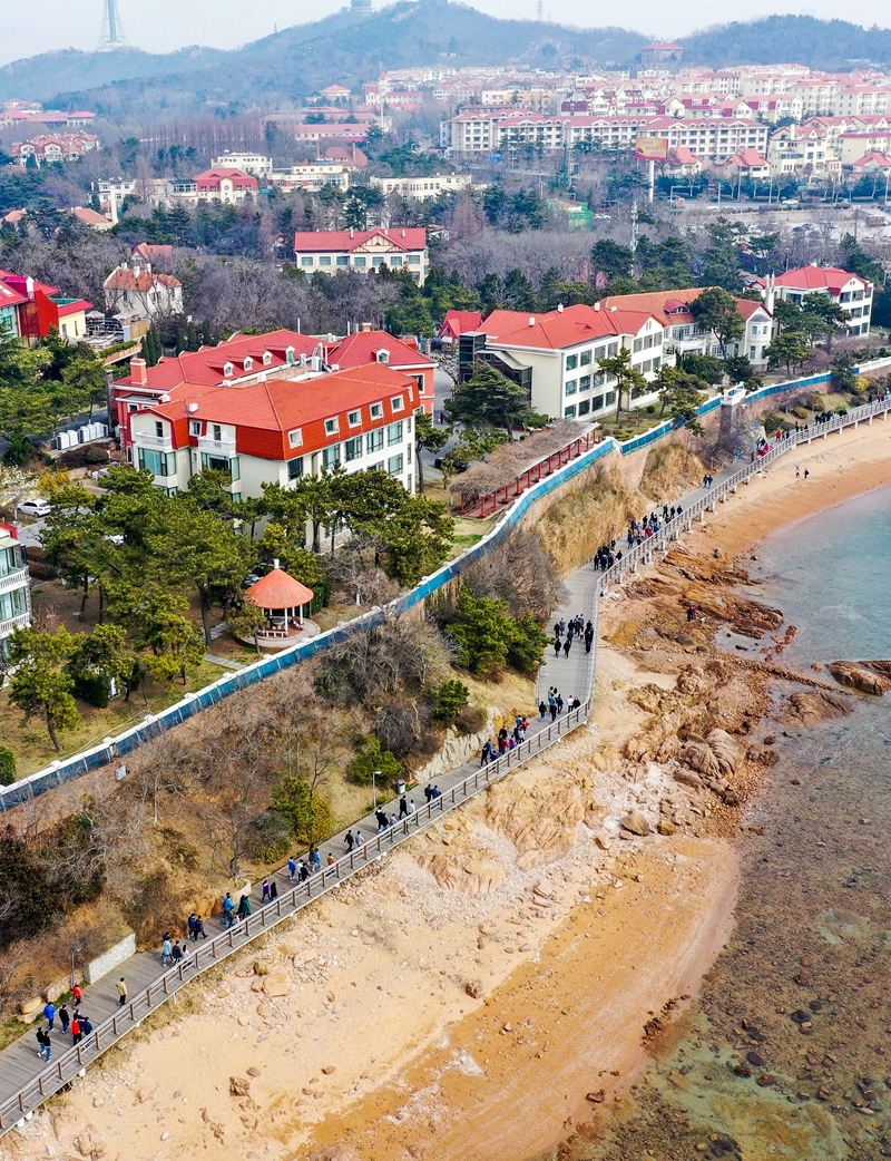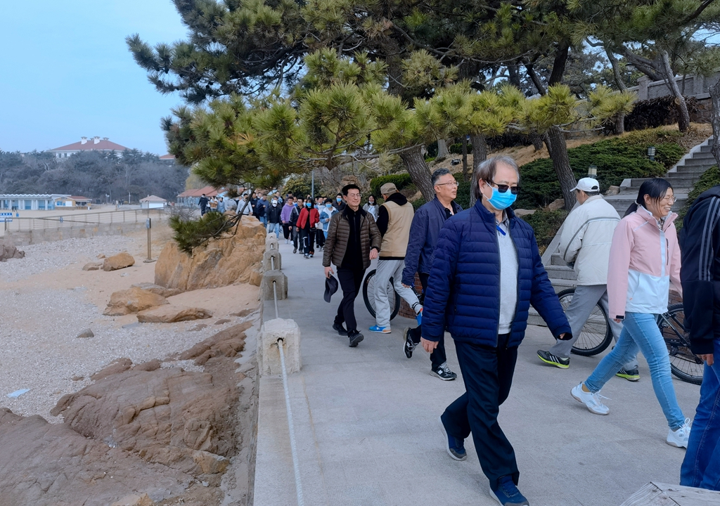 大家走出辦公室,走出實驗室,走進大自然,走進春天,沿著美麗的匯泉灣濱海木棧道一路前行,一邊與身邊同事、同學(xué)談笑風(fēng)生,一邊欣賞沿途美麗的濱海風(fēng)景和八大關(guān)建筑,在鍛煉身體的同時放松調(diào)節(jié)了心情,舒緩了工作壓力,增進了身心健康。