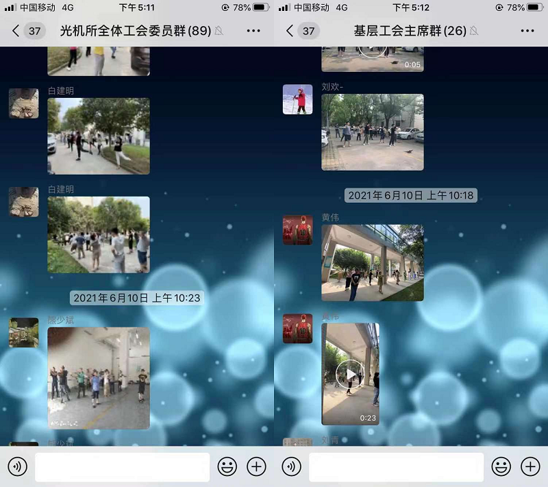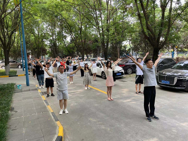 西安光機(jī)所新園區(qū)廣播操音視頻發(fā)布系統(tǒng)于2020年7月建成投入使用。6月10日上午,各基層工會(huì)通過(guò)圖片和視頻的方式將工間操情況在全所工會(huì)群里進(jìn)行了線上展示。綠蔭樹(shù)下,辦公樓間,屋頂平臺(tái),大家舉手,投足,轉(zhuǎn)身,彎腰,節(jié)奏中展現(xiàn)著活力。倡導(dǎo)健康生活方式,增強(qiáng)職工體質(zhì),第九套廣播操為研究所營(yíng)造了濃厚的全民健身活動(dòng)氛圍。