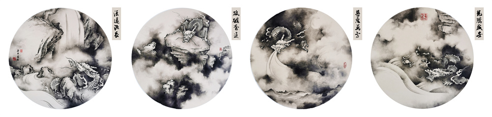 作品簡介:龍是中華民族的偉大圖騰與精神象征。作品以龍為主題,從右至左,分別以“龍騰盛世”“普惠天下”“砥礪奮進(jìn)”“源遠(yuǎn)流長”命名,寓示科學(xué)工作者欣逢盛世,在黨的關(guān)懷和領(lǐng)導(dǎo)下,不斷取得新的成績,惠及社會(huì)大眾,不懈努力、創(chuàng)新發(fā)展。