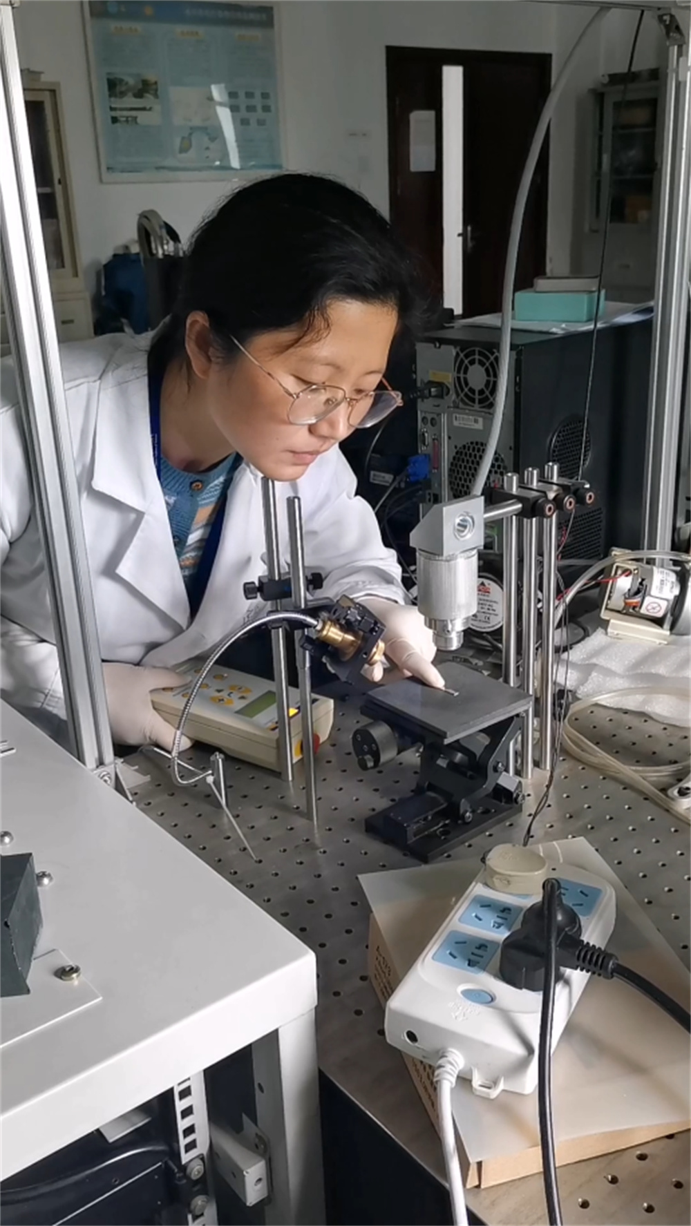 作品簡(jiǎn)介:經(jīng)處理的鋁片電沉積富集水體痕量重金屬元素(更均勻),用激光誘導(dǎo)擊穿光譜測(cè)量時(shí)檢測(cè)下限可達(dá)ppb量級(jí),遠(yuǎn)低于直接測(cè)量水體,穩(wěn)定性為5%以下。此為水體中痕量重金屬元素的高靈敏穩(wěn)定在線分析新方法。圖為方麗助研。