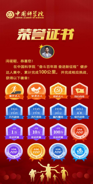 “奮斗百年路 奮進(jìn)新征程”線上健步達(dá)人賽獲得徽章頁面